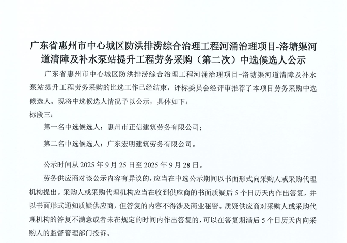 惠州市水電建筑工程有限公司勞務(wù)供應(yīng)商庫擴(kuò)庫評審結(jié)果公示……